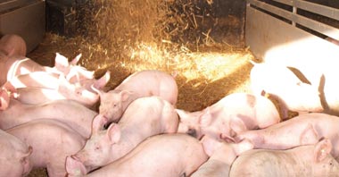 In einem hellen, lichtdurchfluteten Klimaoffenstall werden unsere Schweine auf täglich frisch eingestreutem Stroh gemästet. Natürlich bekommen unsere Tiere nur bestes und gesundes Futter. Die Tiere erhalten während der Mast ausschließlich betriebseigenes Getreide.